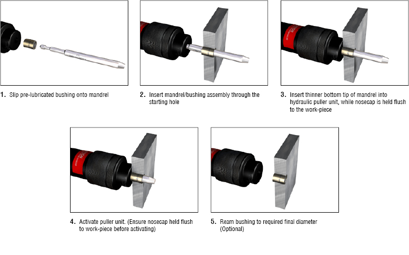 The high interference fit provides for greater resistance to rotation or pushout than other bushing installation techniques.