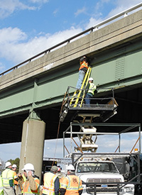 Fatigue Technology (FTI) was contacted by HNTB on behalf of the New Jersey Turnpike Authority (NJTA) to apply the FTI StopCrackEX process adjacent to cracks running along weld connections that join the flange to webs of typical floorbeams. The aim of the project was to compare the effectiveness of typical crack arrest holes (CAH) against StopCrackEX. Six cracks were identified at Milepost E.112.95A, Interchange 17 – Ramp NET (A) on the New Jersey Turnpike, (Lincoln Tunnel interchange). All cracks were identified as out-of-plane bending cracks. Typical CAH, drilled centered on the crack tip directly into the weld material, had proven to not arrest the growth of the crack.
